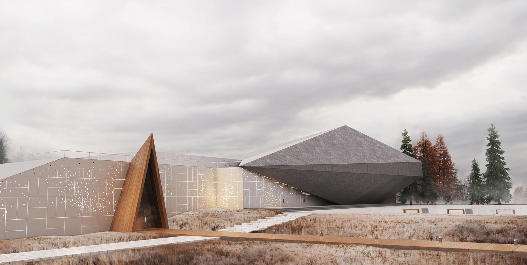 Incredible as always. This guys have excellent taste,modeling, texturing & rendering skills. The design fits in with what I would perceive as being Icelandic, the high wooden roof design and linear slatted interior elements and colours.